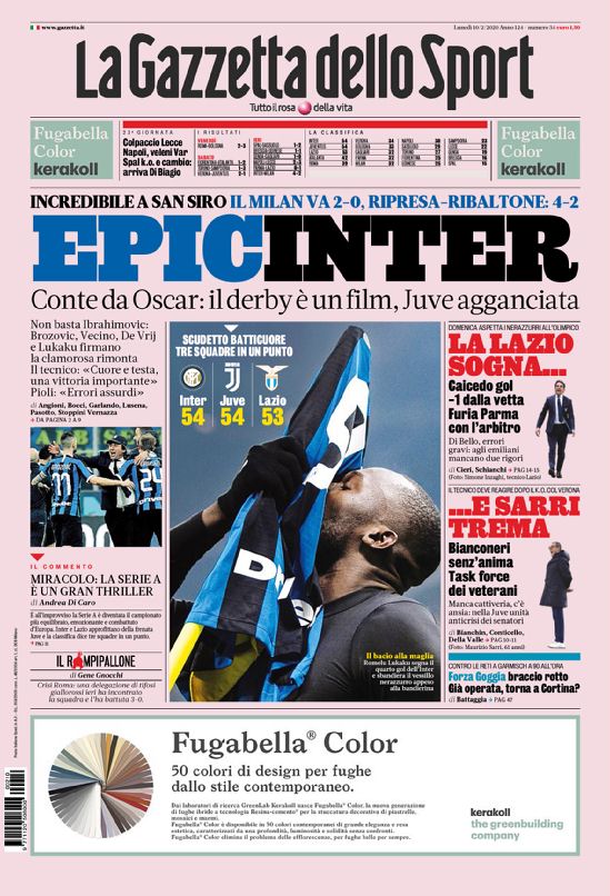 Le prime pagine dei quotidiani sportivi del 10-02-2019
