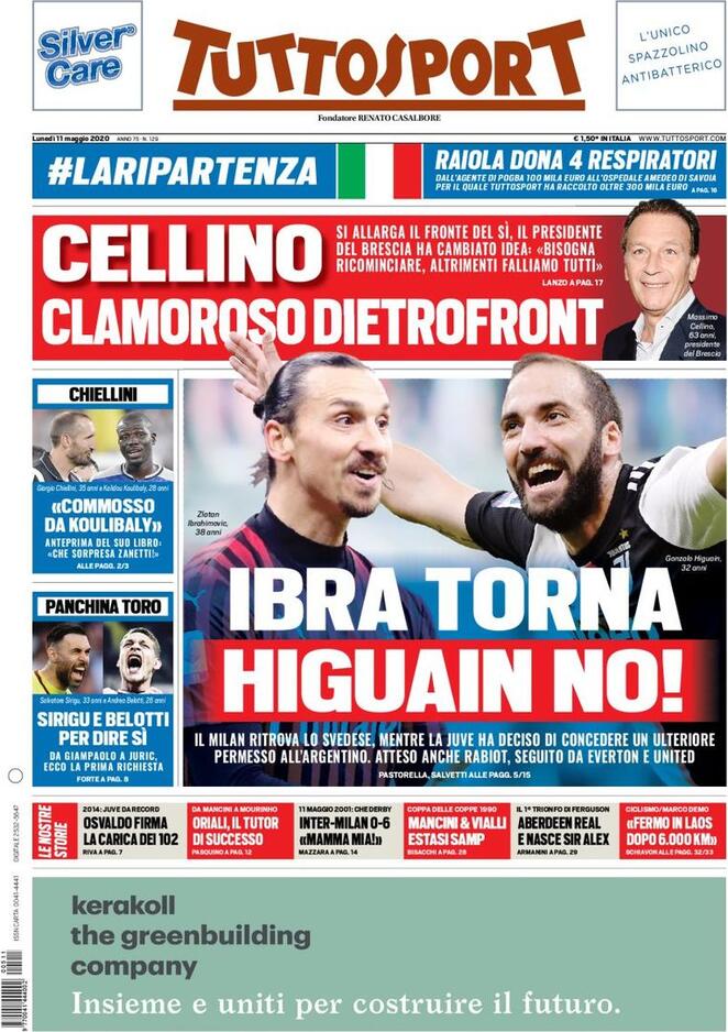 Le prime pagine dei quotidiani sportivi dell’11-05-2020