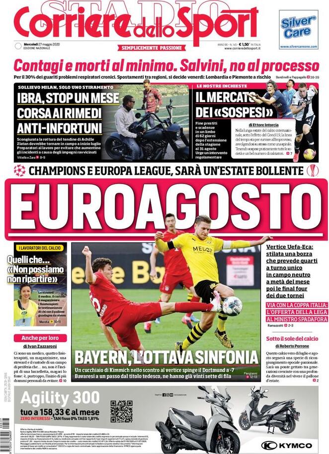 Le prime pagine dei quotidiani sportivi del 27-05-2020