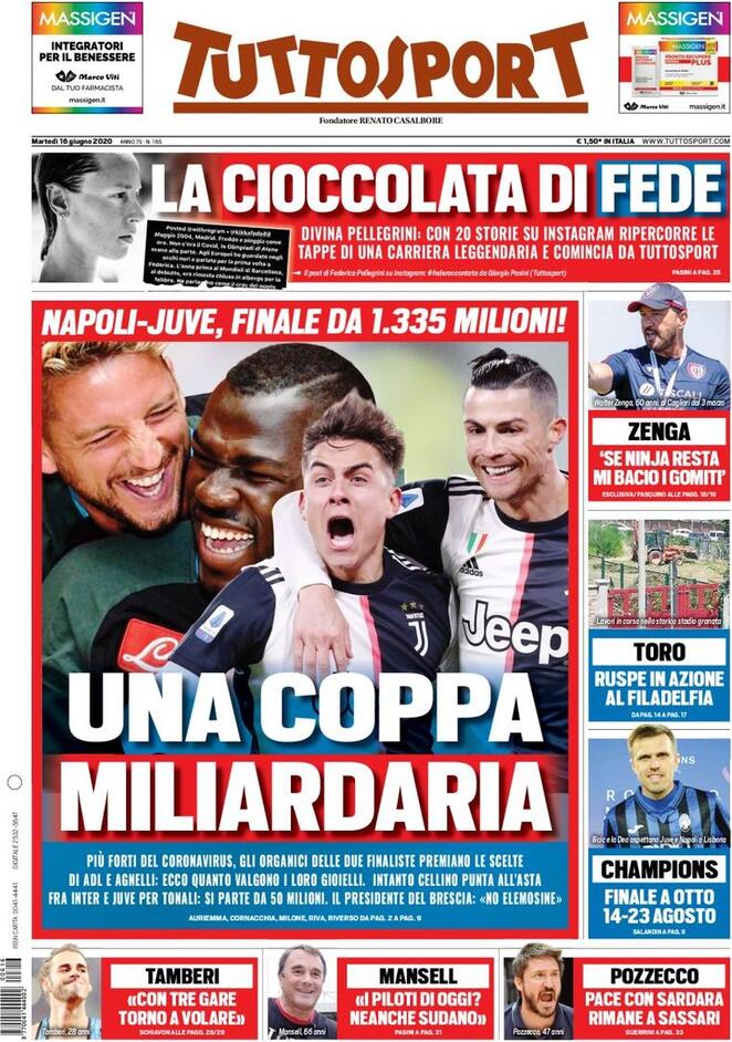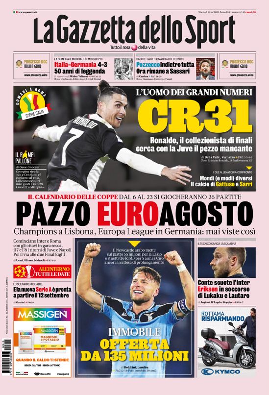 Le prime pagine dei quotidiani sportivi del 16-06-2020