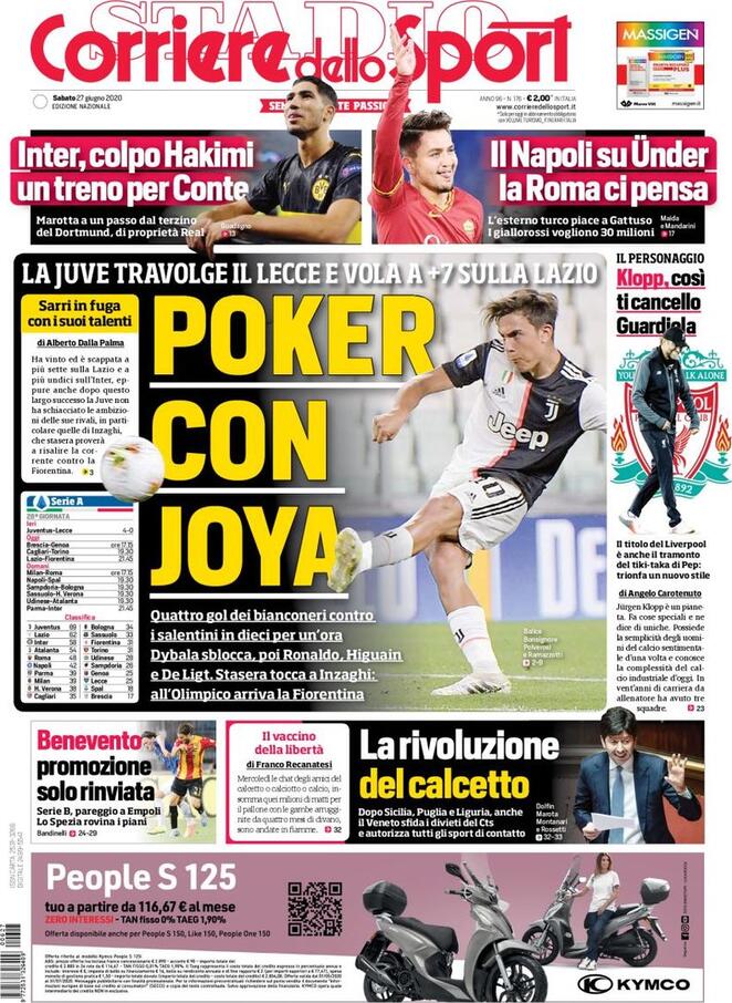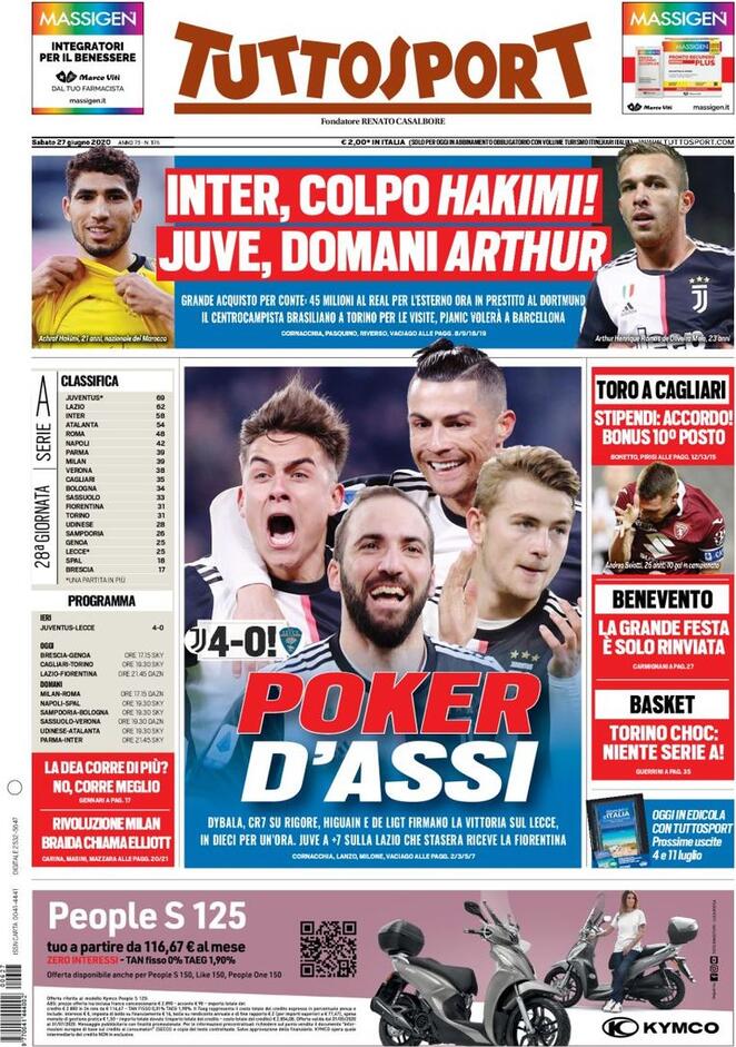 Le prime pagine dei quotidiani sportivi del 27-06-2020