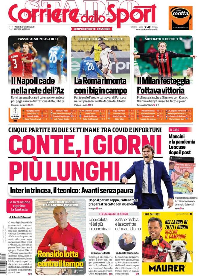 Le prime pagine dei quotidiani sportivi del 23-10-2020
