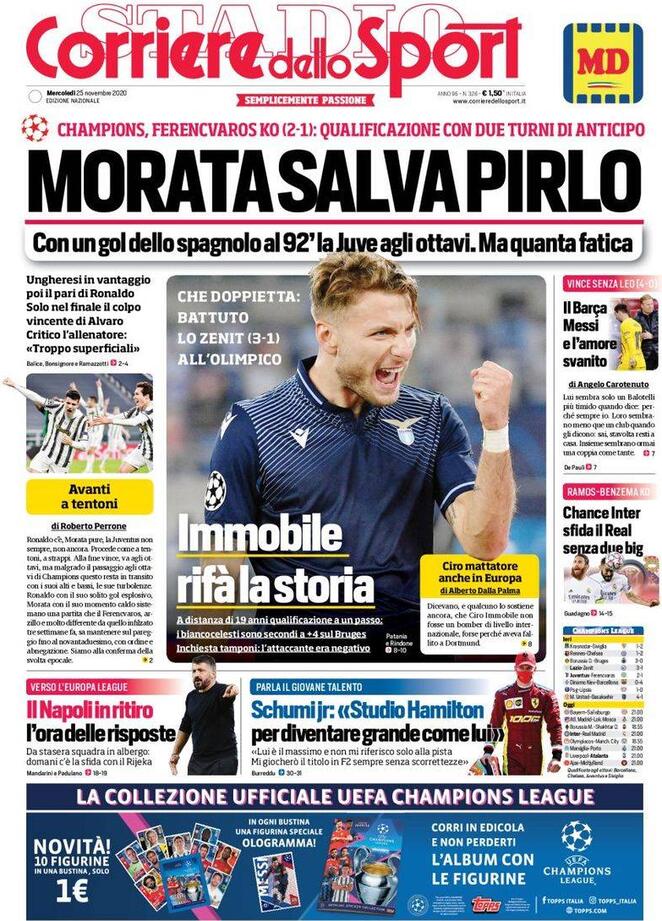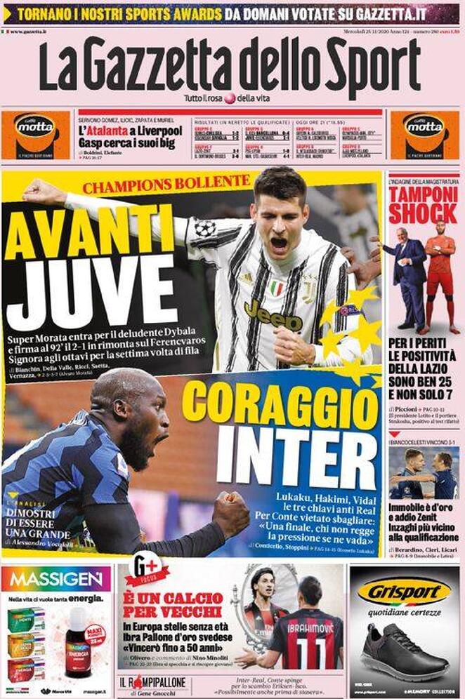 Le prime pagine dei quotidiani sportivi del 25-11-2020