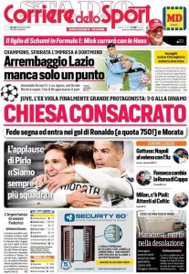 La nostra redazione vi augura buona giornata con le prime pagine dei quotidiani sportivi di oggi