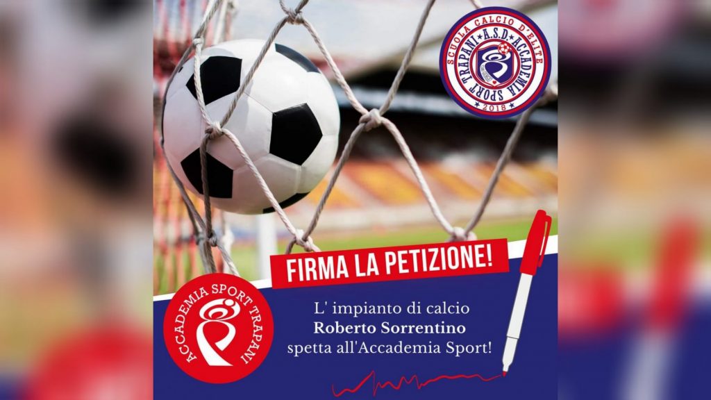 Trecento firme per chiedere l’assegnazione del centro sportivo “Roberto Sorrentino” all’Accademia Sport Trapani. Sono i numeri, che, in meno di ventiquattro ore, hanno dato sostegno alla società sportiva trapanese, che partecipò al bando che nel 2018 vide vincere il Trapani Calcio.