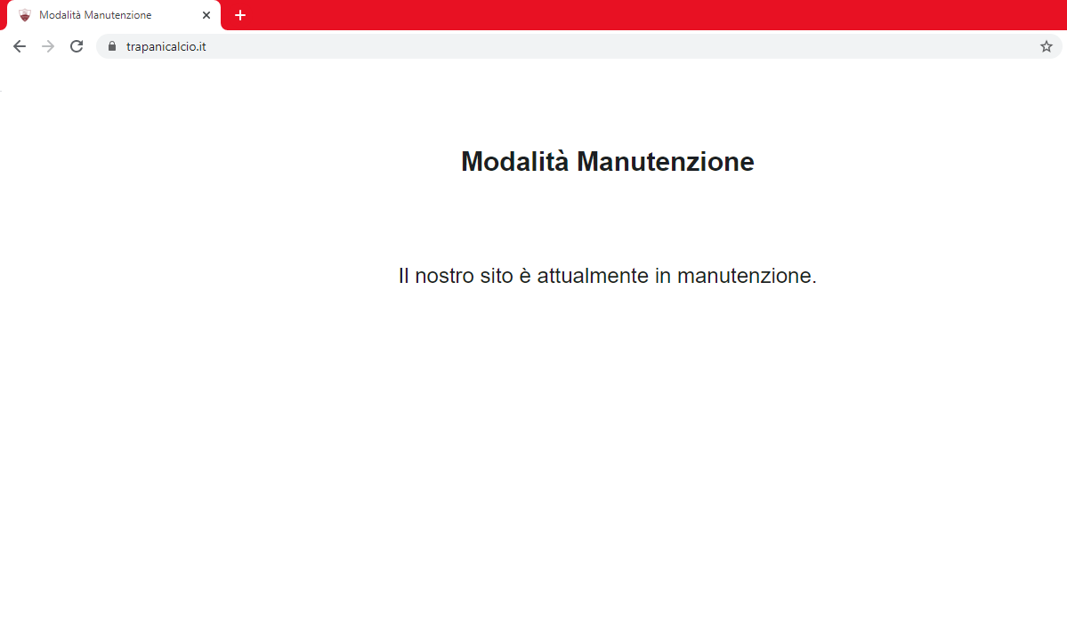 “Il nostro sito è attualmente in manutenzione”. È questa la scritta che i tifosi granata si ritrovano digitando i siti internet www.trapanicalcio.it e store.trapanicalcio.it. Una scritta che aveva accompagnato per mesi i supporters trapanesi, prima dell’ultimo restyling del sito effettuato a giugno.