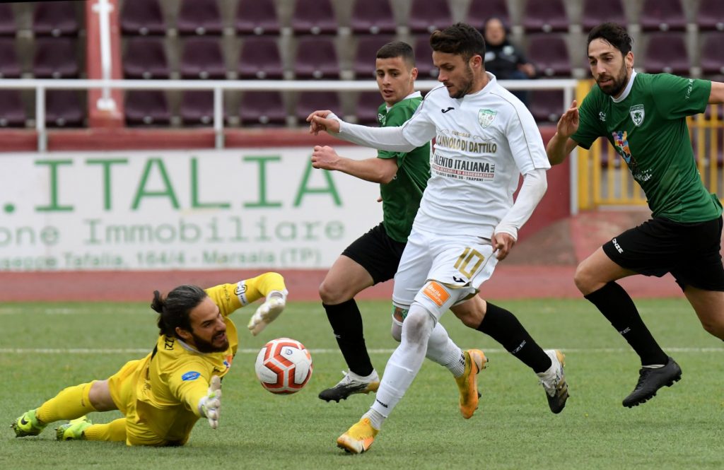 Allo stadio Provinciale, la formazione biancoverde ha sconfitto 3 a 0 il Marina di Ragusa. A segno il solito ManfrĆØ...
